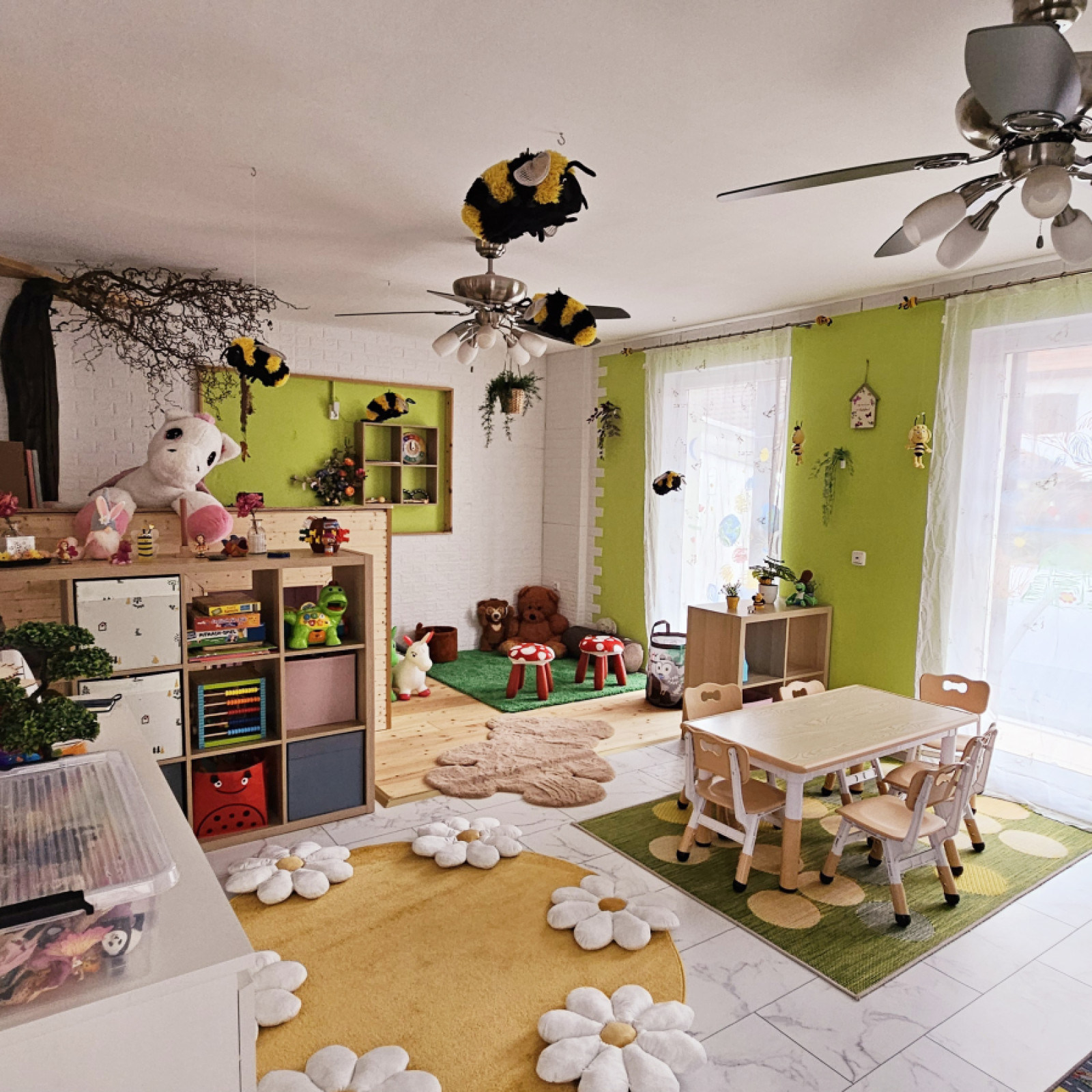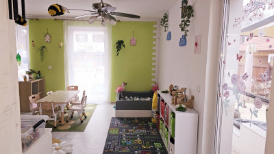 Im Meeres Zimmer können die Kinder, die über Mittag bleiben, ihren Mittagschlaf machen.