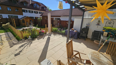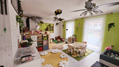Vom Spielzimmer aus kommt man direkt in den Garten.