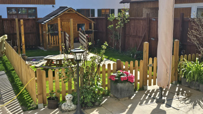 Im großen Garten können die Kinder sich nach Herzenslust austoben und spielen.